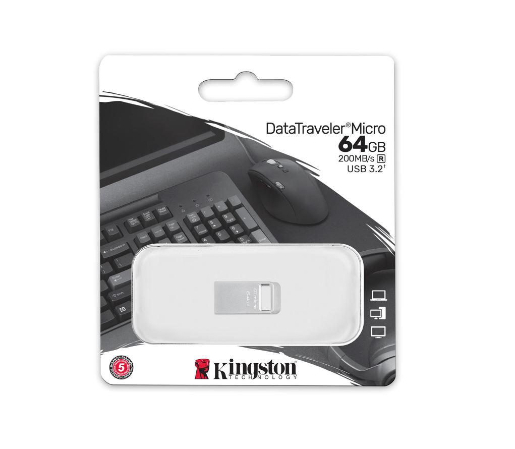 Memorie USB Flash Drive Kingston 64GB Data Traveler Micro USB 3.2 Gen1Metalic