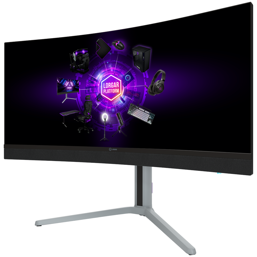 Monitor Gaming Curbat MiniLED VA Lorgar Pro 34MP1 34″ UWQHD (3440×1440), 180Hz, 1ms, AMD FreeSync™, NVIDIA G-Sync™ Compatible, HDR 1000, 1500R, Iluminare RGB, Boxe 2.1, USB Type-C, Hub USB, 2x HDMI, Display Port, Jack, Pivot, VESA, black/milky grey