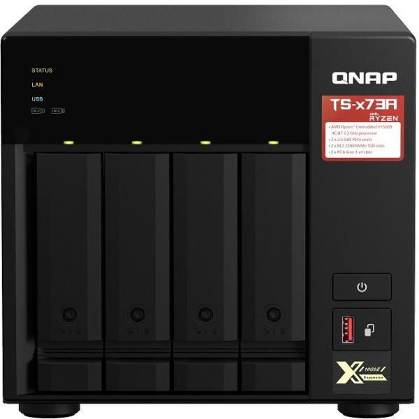 NAS QNAP 473A 4-Bay, CPU AMD Ryzen V1000 series V1500B 4C/8T 2.2 GHz, RAM 8GB (1x 8GB) DDR4 (2 x SODIMM slots, max. 64GB total, optional ECC RAM support), 2.5/3.5 SAS 12Gbps, SAS/SATA 6Gbps HDD (neincluse), LAN: 2 x 2.5GbE, optional 10GbE expansion via a PCIe card, USD3.2 Gen2: 3x Type-A USD3.2 Gen1: 1x Type-C, tower, single PSU, 250W, garantie 3 ani