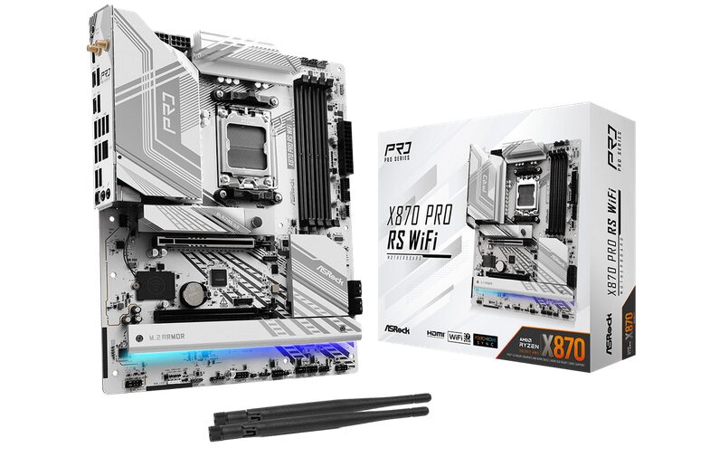 Placa de Baza ASROCK X870 PRO RS WIFI AM5, 4x DDR5, 1x HDMI 2x USB4, 1x PCIE 5.0 x16 1x PCIE 4.0 x16, 4x M.2, 4x SATA 6GB/s, ATX