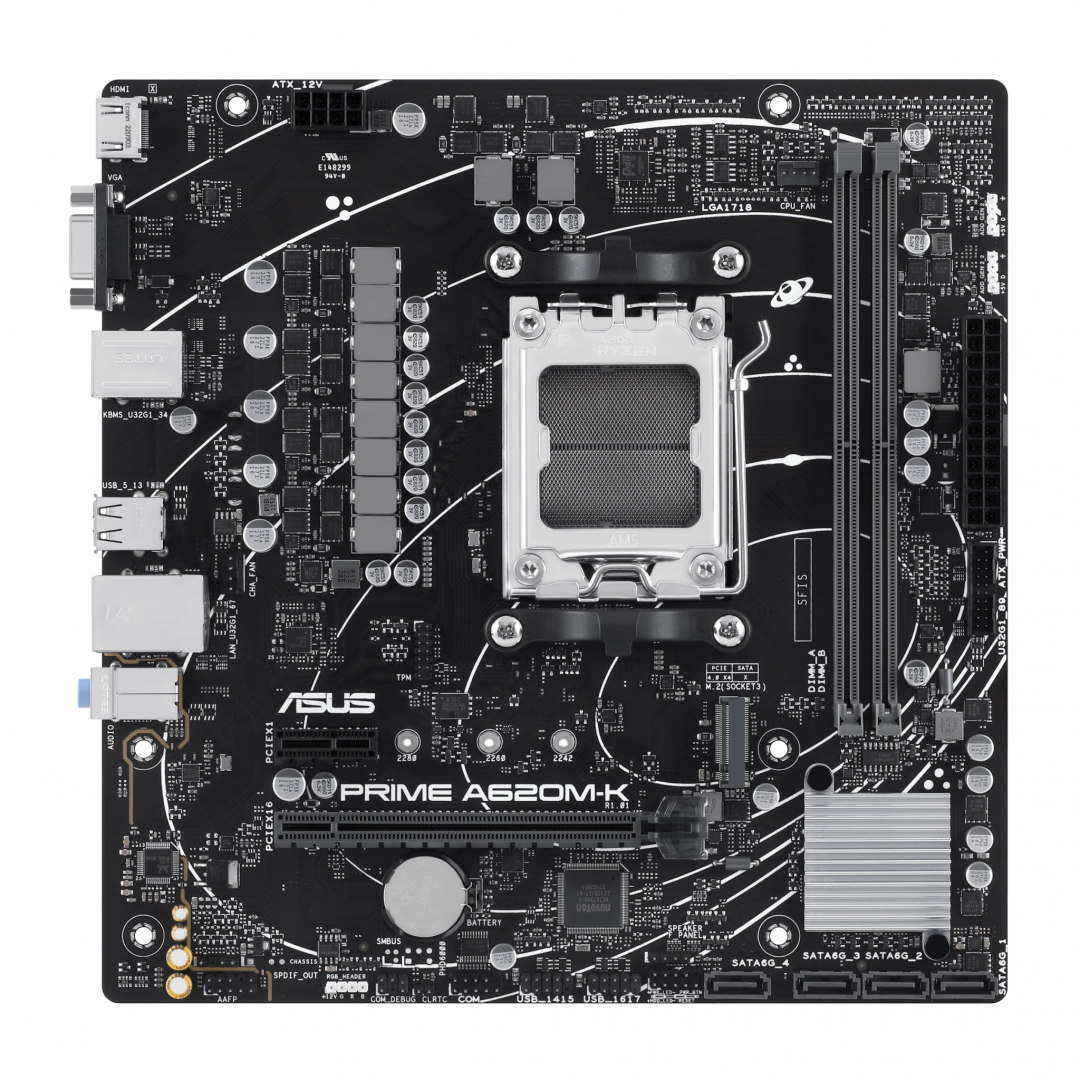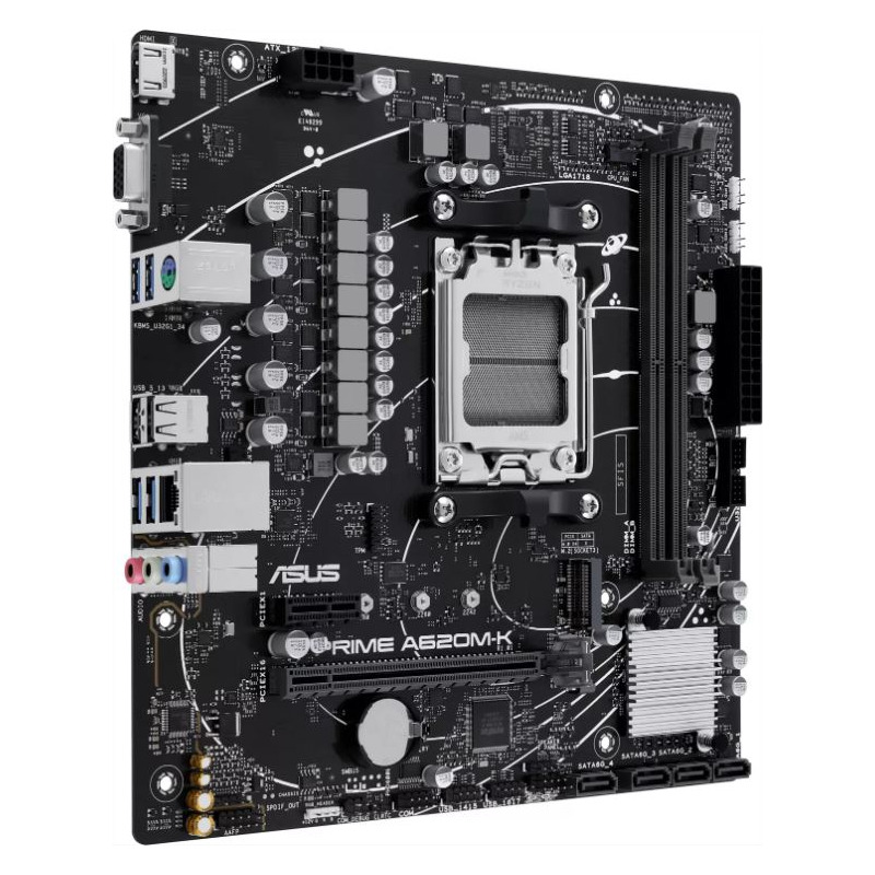 Placa de baza ASUS PRIME A620M-K AM5, 2x DDR5, 1x VGA 1x HDMI, 1x PCIE x16 1x PCIE x1, 1x M.2, 4x SATA 6GB/s, mATX