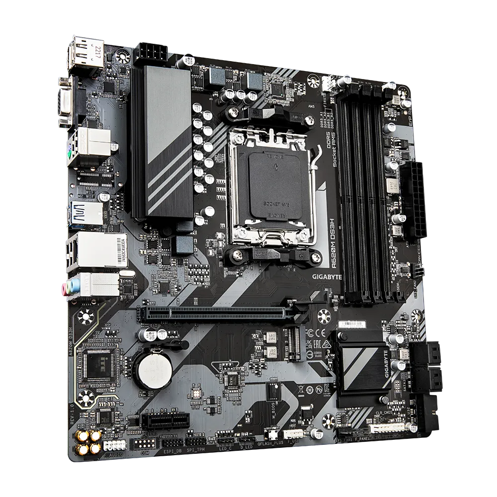 MB GIGABYTE A620M DS3H (rev. 1.0) AM5 4xDDR5 1x Display Port, 1x HDMI, 1x D-Sub, Micro ATX https://www.gigabyte.com/Motherboard/A620M-DS3H-rev-10/sp#sp