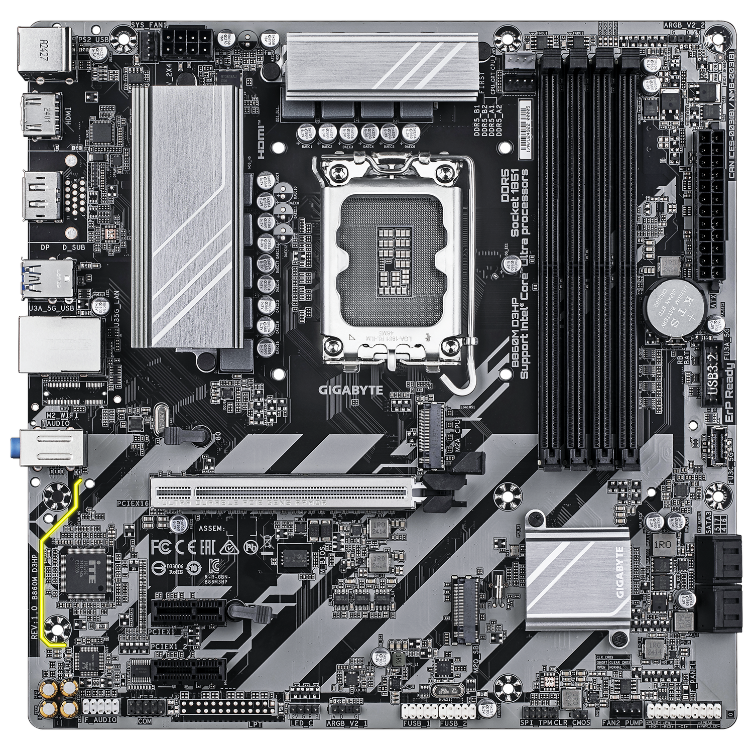 Placa de Baza GIGABYTE B860M D3HP LGA1851, 4x DDR5, 1x HDMI 1x DP, 1x PCIE x16 2x PCIE x1, 2x M.2, 4x SATA 6GB/s, mATX