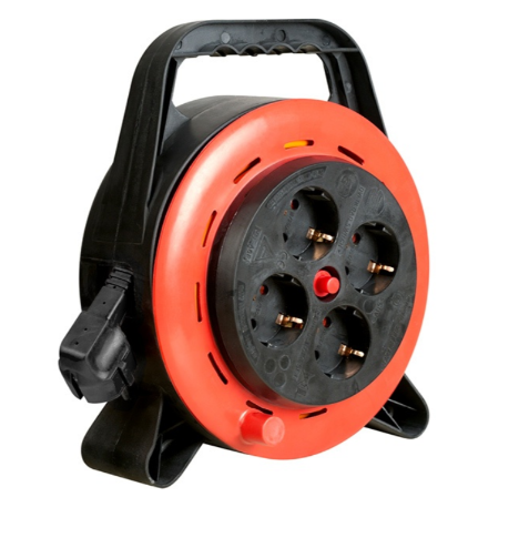 Prelungitor cu tambur Bachmann incasetat, 4 prize Schuko, cu termosiguranta, H05VV-F3G1mm², 10m