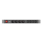 Unitate distributie alimentare PDU 19″, 1U, 16A, 4 prize si 4 prize IEC C13, negru