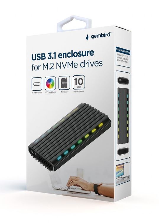 Rack extern GEMBIRD, pt. SSD, M.2, M.2, interfata PC USB 3.1, RGB LED backlight, aluminiu Argintiu
