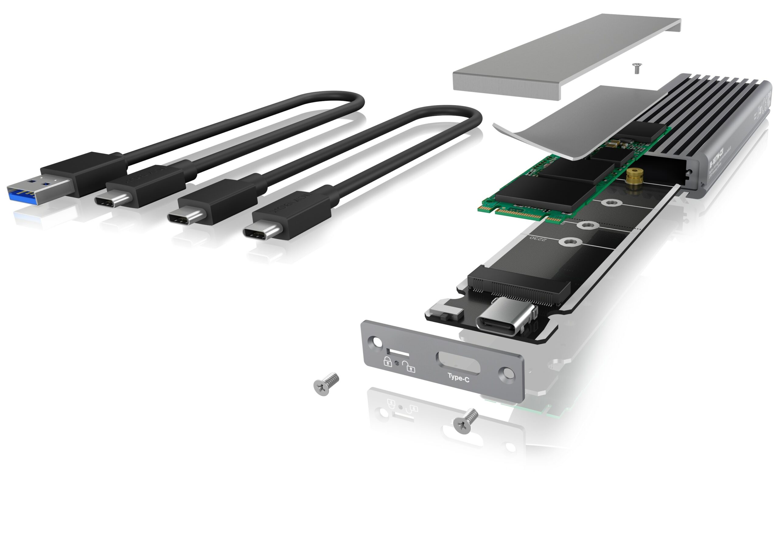 RACK extern Icy Box, pt. SSD, 1xM.2 SSD la USB 3.1 gen2-C,pana la 10Gbit/s, 22×30/ 42/ 60/ 80, aluminiu,radiator aluminiu+pad silicon,prot.scriere, negru, „IB-1817M-C31” (timbru verde 0.8 lei )