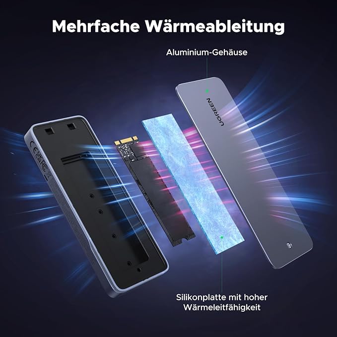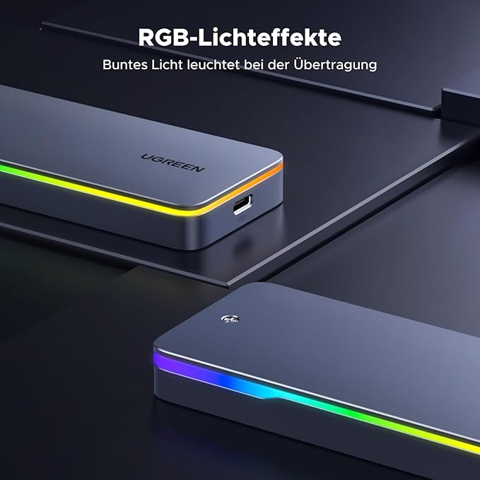 RACK extern Ugreen RGB, „CM777” pt SSD M.2 NVME SATA compatibile cu form factor 2280/2260/2242/2230,cablu inclus de 50 cm USB Type-C la USB Type-C, 20 Gbps, gri „25665” (timbru verde 0.8 lei)