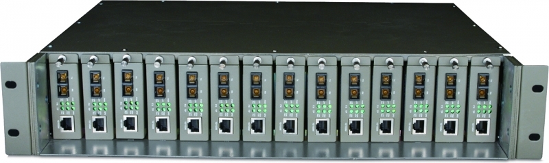 „14-Slot Media Converter Chassis SPEC: 14-Slot, Rackmount FEATURE: Redundant Power Supply, Mounted Two Fans, Compatible with TP-Link’s Media Converter (9VDC Input)”