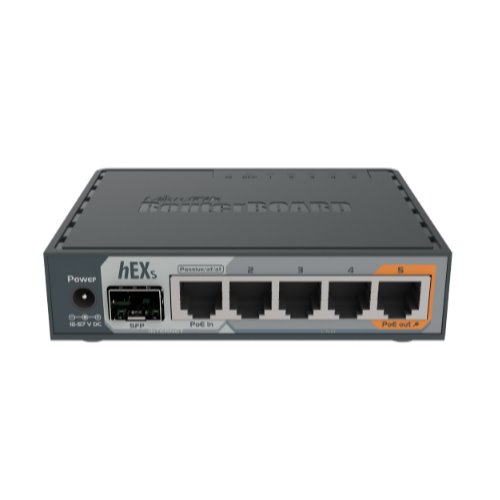 Mikrotik 5-Port Gigabt Ethernet Router, RB760iGS, 5* 10/100/1000Ethernetports, CPU nominal frequency: 880 MHz, 2* CPU core count, 4*CPU Threadscount, Size of RAM: 256 MB, Max Power cons 11W, 1x SFP ports, 1x USBports