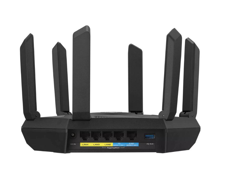 Router Wireless Asus RT-AXE7800, tri-band, WI-FI 6, , standarde reteaEEE 802.11a, IEEE 802.11b, IEEE 802.11g, WiFi 4 (802.11n) WiFi 5 (802.11ac), WiFi 6 (802.11ax), WiFi 6E (802.11ax), IPv4, IPv6 574+4804+2402 Mbps, 6 antene externe, Procesor: 1.7Ghz, 256mb ram, Tri-band Wi-Fi: 2.4 GHz / 5 GHz / 6 GHz, interfata: 1 WAN, 3LAN, 1x USB 3.2.