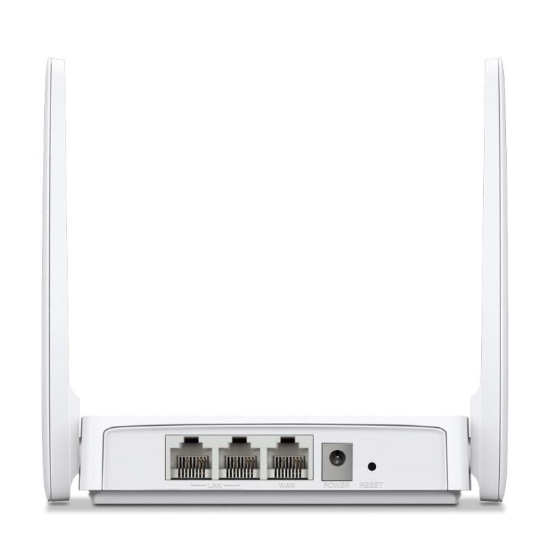 Router Wireless Mercusys N 300 Mbps, MW302R; Standarde Wireless: IEEE 802.11 b/g/n, Frecventa: 2.4-2.5 GHz, viteze wifi: 11n: Up to 300Mbps, 11g: Up to 54Mbps, 11b: Up to 11Mbps, Securitate: WPA-PSK/WPA2-PSK, 2 antene fixe, interfata: 1 x 10/100Mbps WAN, 2 x 10/100Mbps LAN.