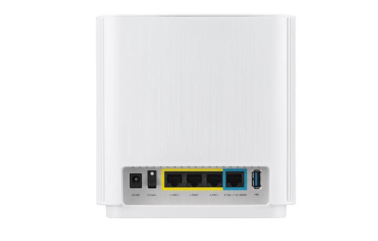 Asus Tri band home Mesh ZENwifi system, XT9, White; 1 pack, 1.7 GHz quad-core processor, 256 MB Flash, 512 MB RAM ; AX7800, Tri-band: 2.4Ghz 2×2, 5Ghz 2×2,5Ghz 4×4, Network Standard: IEEE 802.11a, IEEE, 802.11b, IEEE 802.11g, WiFi 4 (802.11n), WiFi 5 (802.11ac), WiFi 6 (802.11ax), IPv4, IPv6, AX7800 , 574+2402+4804Mbps, 6 x antene interne, Interfata: RJ45 for 2.5G BaseT for WAN x 1, RJ45 for Gigabits BaseT for LAN x 3, USB 3.2 Gen 1 x 1, Greutate: 740g.