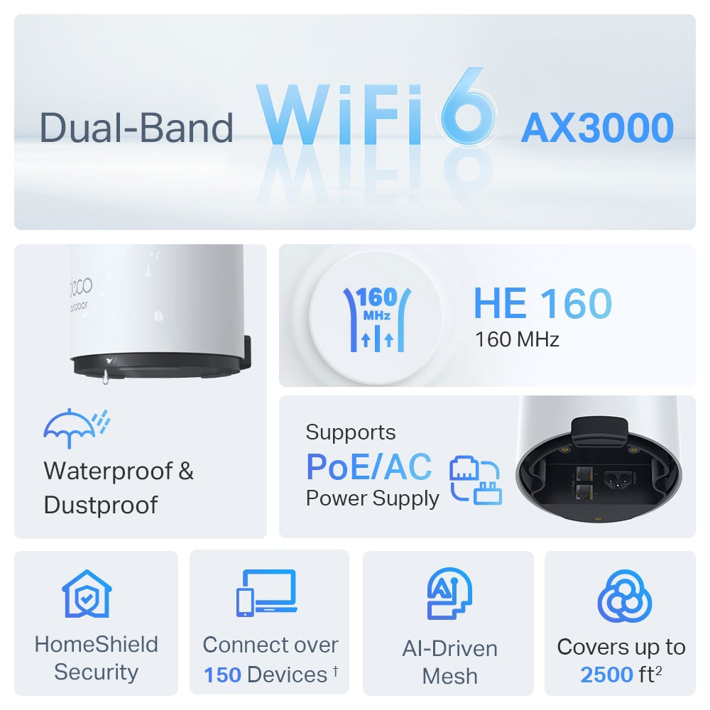Router Mesh Wireless TP-Link Deco X50-Outdoor(1-pack), Dual-Band, Wi-Fi 6 , Gigabit, AX3000, de exterior, cu acoperire completa pentru casa, Seamless Roaming, Antivirus, Control Parental si Control Vocal