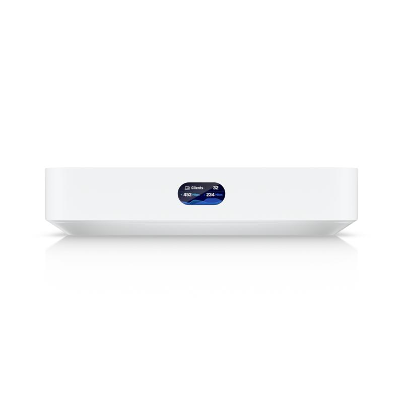 Router Ubiquiti UCG-MAX, 4 x LAN, 1 x WAN, 10/100/1000/2500 Mbps, 5 x RJ-45, procesor Quad-core ARM Cortex-A53 1.5 GHz, Memorie FLASH ROM 512 GB NVMe SSD