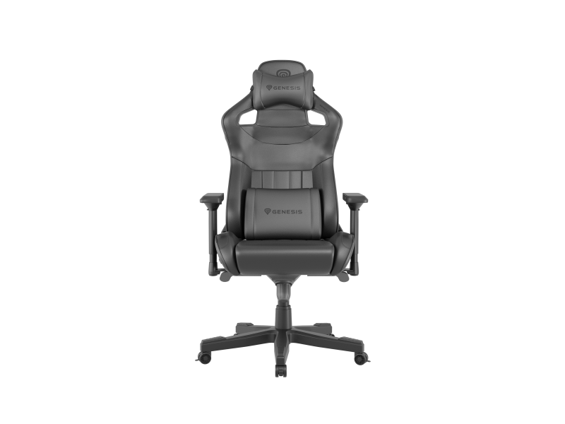 Scaun gaming Genesis Nitro 950, material piele ecologica, reglabil pe inaltime, greutate maxima suportata 150 kg, inaltime scaun reglabil 50 – 55 cm, spatar ajustabil 160°, dimensiuni roti 60mm, echipat cu piston cu gaz clasa 4, manere 4D, negru