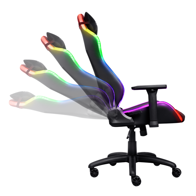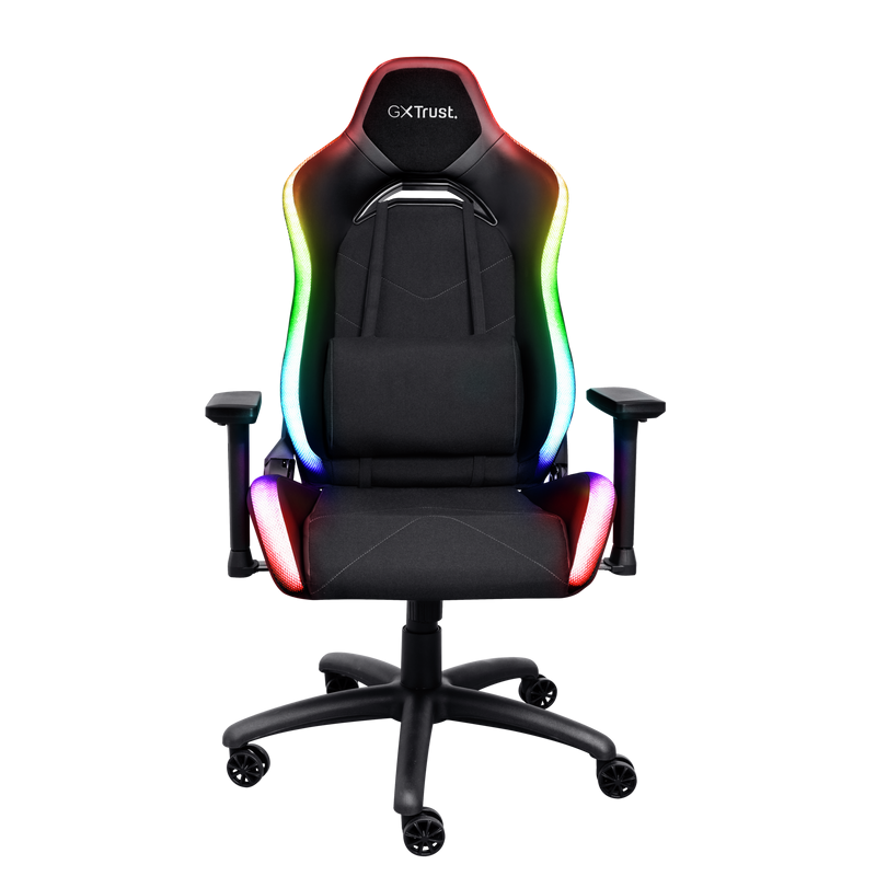 Scaun gaming Trust GXT 719 Ruya, iluminare RGB, 5 roti, ridicare pe gaz clasa 4, adjustabil pe inaltime, material piele PU si plastic, greutate maxima suportata 150 kg, negru