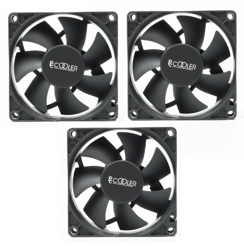 Set 3 ventilatoare PCCooler „DN 80”, 80mm, 1400 RPM, hydraulic bearing, 18.21 cfm, 3-pin, negru