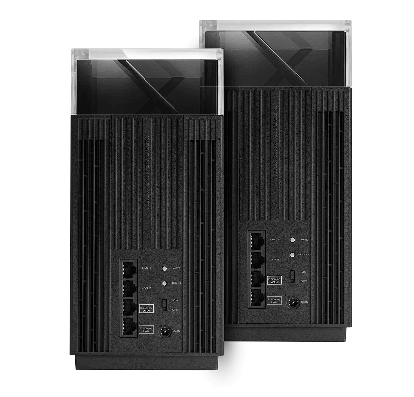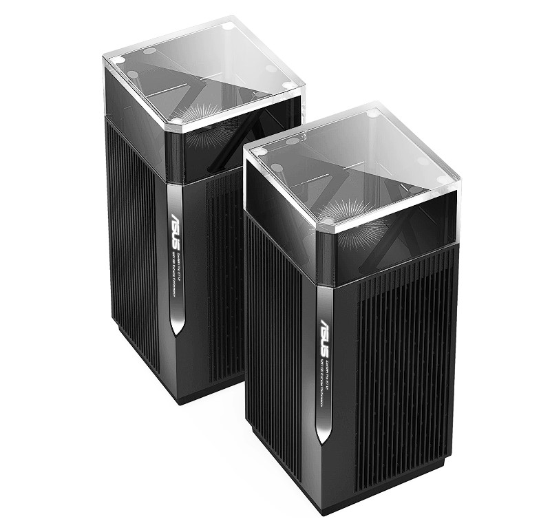 Asus Tri band home Mesh ZENwifi PRO system, ET12(2-PK) pack, AXE11000 1148+4804+4804Mbps,10 X antene interne, Tri-Band: 2.4GHz 4×4, 5GHz 4×4, 6GHz 4×4, Procesor: 2.0 GHz quad-core 64bits, Memorie: 256 MB Flash, 1GB RAM, interfata: RJ45 for 2.5G BaseT for WAN x 1, RJ45 for 2.5G BaseT for LAN x 1, RJ45 for Gigabits BaseT for LAN x 2, WPA2-PSK, WPA-PSK, greutate 1.5 kg.