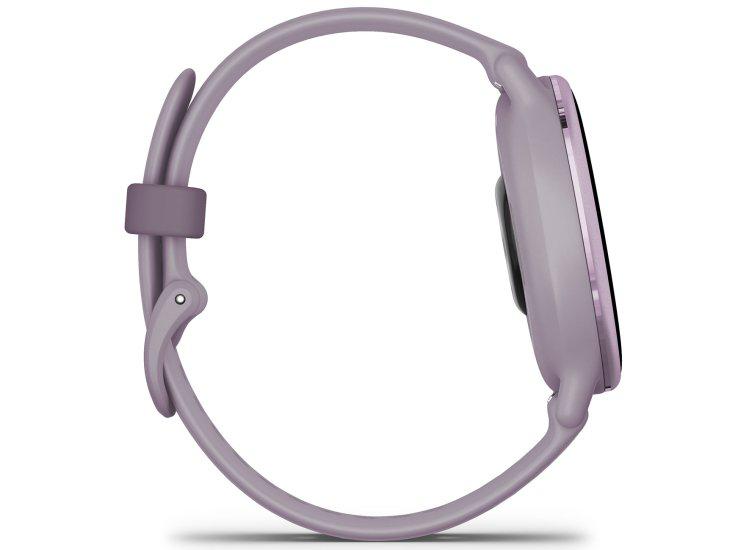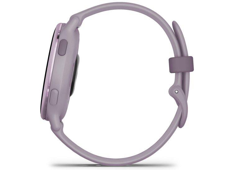 Ceas smartwach Garmin vívoactive 5, display AMOLED, dimensiune afisaj 30,4 mm, rezolutie afisaj 390 x 390 pixeli, memorie 8GB, autonomie pana la 14 zile, rezistanta la apa pana la 5 ATM, ramă metalică din aluminiu orchid cu carcasă orchid Case şi brăţară din silicon, greutate: 26g