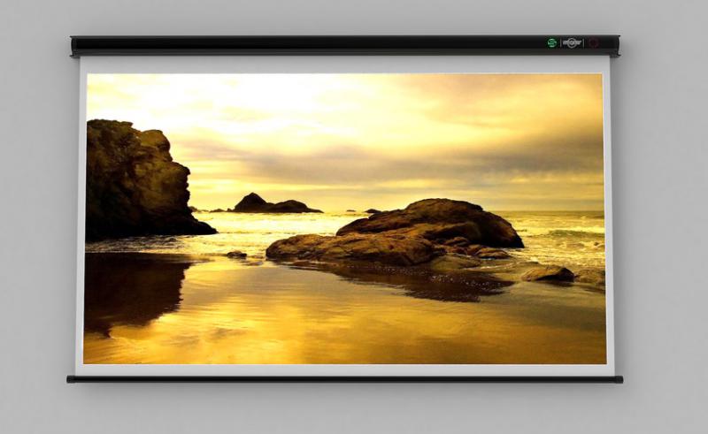 Ecran de proiectie manual, cu prindere in tavan/perete Sopar Slim, format 1:1, suprafata de proiectie 153×153 cm, diagonala 86 inch, unghi de vizionare 150°, tip panza alba (fata) alba (spate), din fier