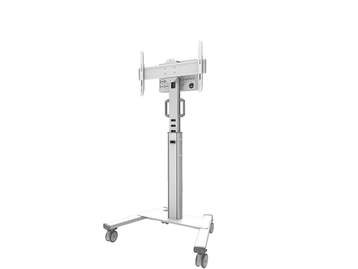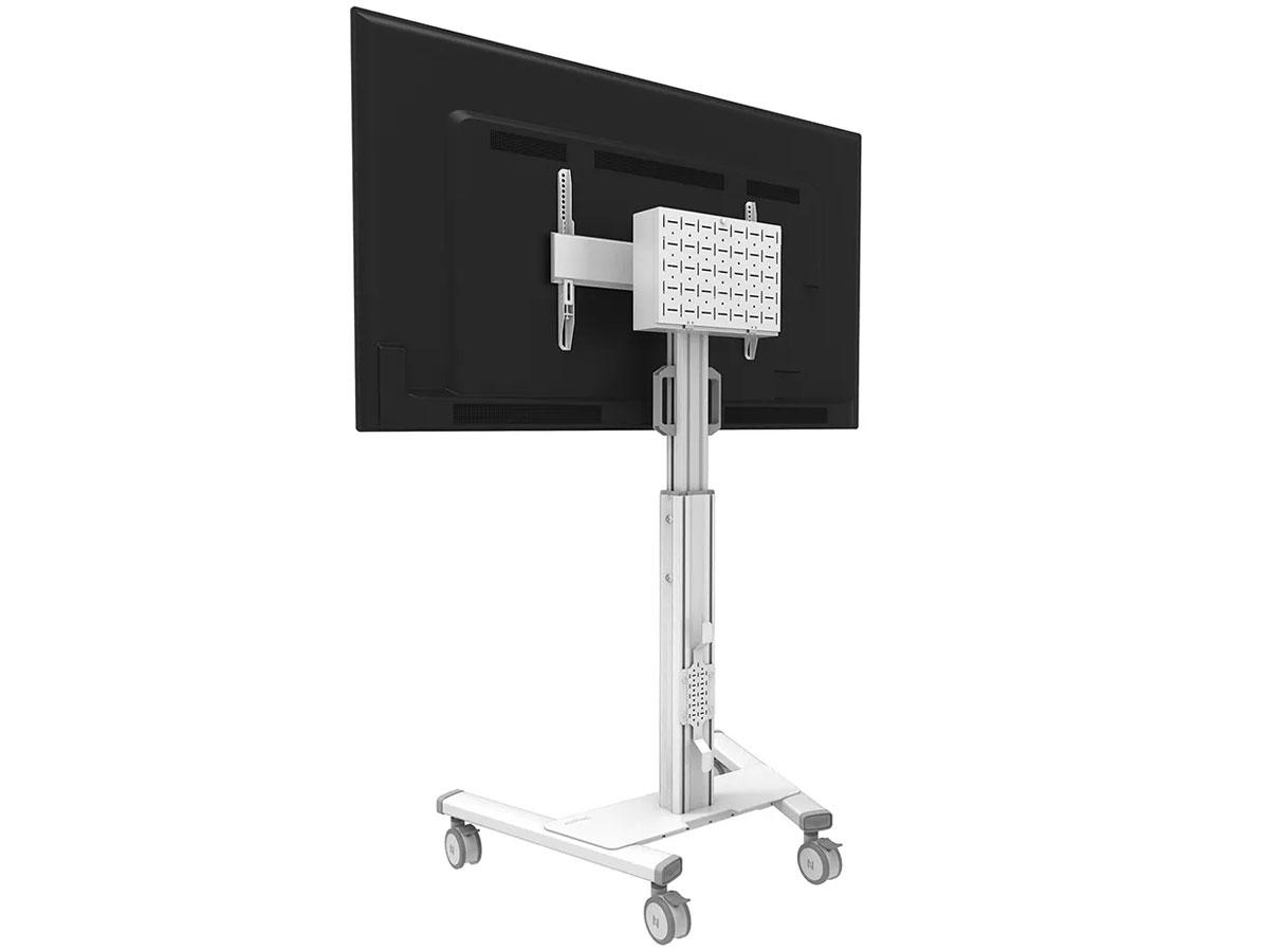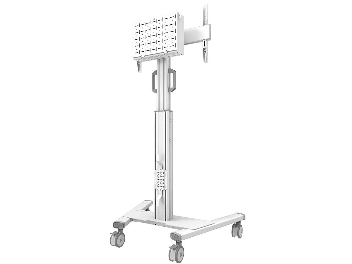Stand podea mobil/fix Neomounts FL50S-825WH1; pentru display-uri cu diagonale 37″-75″, sistem de prindere VESA 100×100~600×400, greutate maxima suportata 70kg, fix, inaltime reglabila manual 1040-1570mm (4 presetari); management cabluri, manere practice, roti 10cm cu blocare dubla; bracketii se pot incuia cu lacat (nu este inclus);