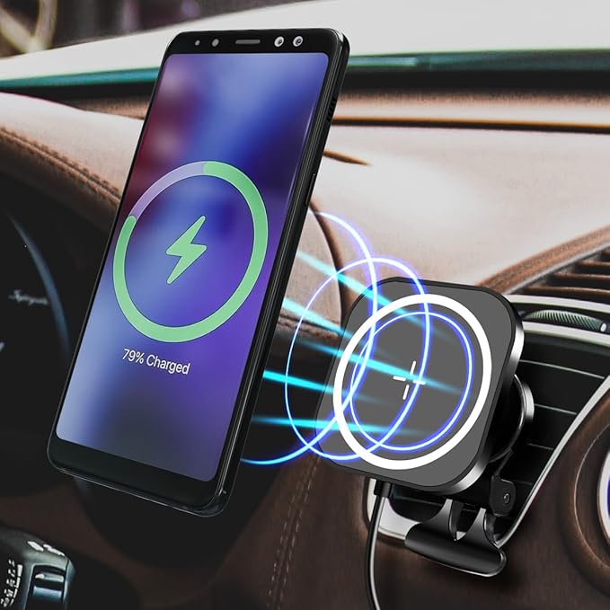 Suport auto magnetic LogiLink cu incarcare rapida Qi 15W, negru, 8,3×8,3×6,05cm