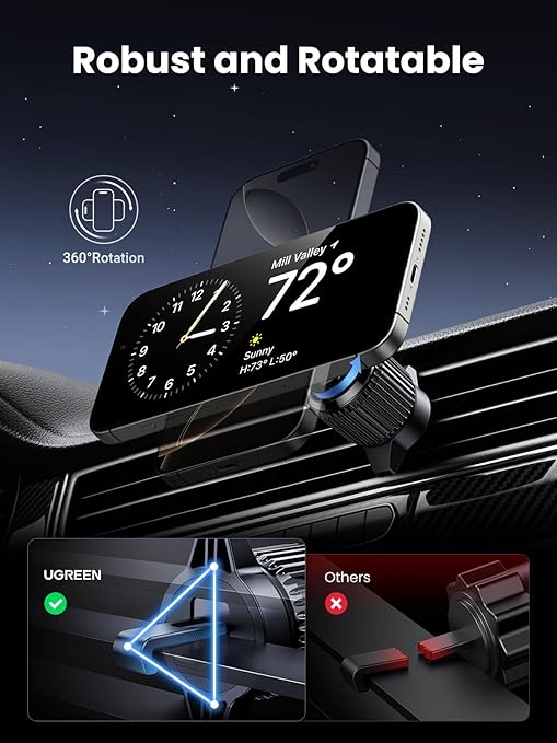 SUPORT AUTO si INCARCATOR wireless Ugreen, „W708” magnetic, incarcare maxim 15W, prindere grilaj ventilatie, negru „35970” (timbru verde 0.18 lei) – 6941876239702