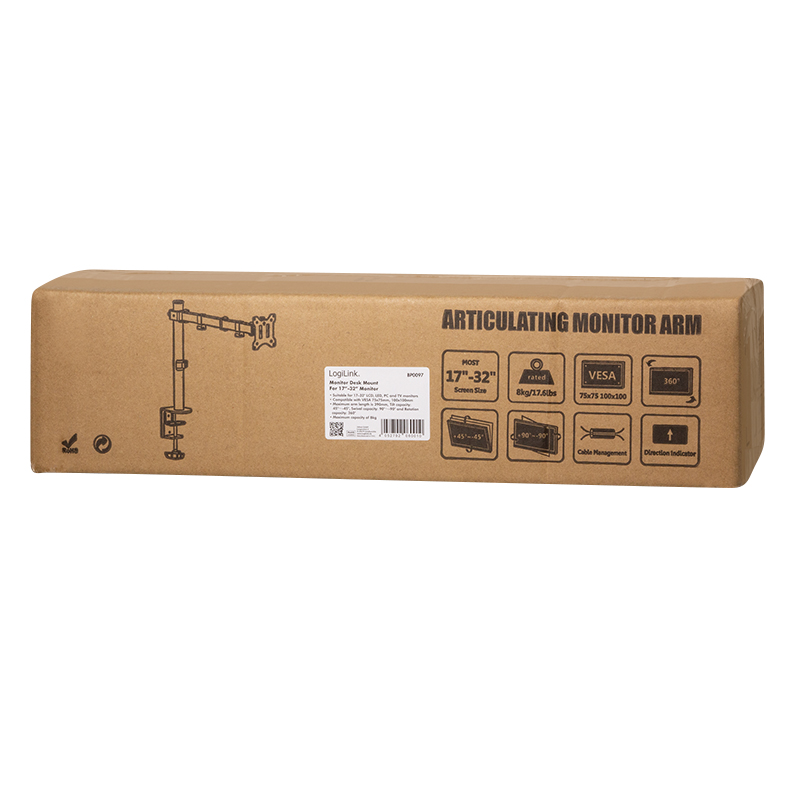 Suport De Birou Logilink, Pt 1 Tv/Monitor Plat, Diag. Max 32 Inch, Rotatie, Inclinare, Pivotare, Max 8 Kg, „Bp0097”