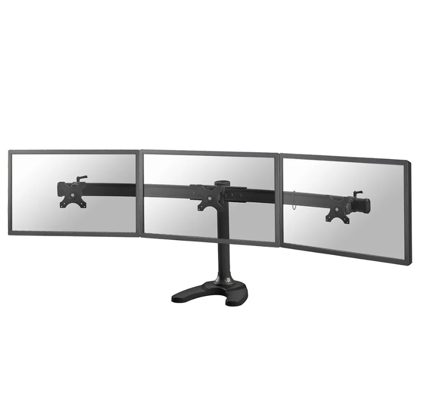 Suport triplu monitor de birou Neomounts FPMA-D700DD3; pentru display- uri cu diagonale 10″-27″, sistem de prindere VESA 75×75~100×100, greutate maxima suportata 8kg – per ecran, swivel +45°, rotate +360°; inaltime reglabila manual 340-450mm; culoare negru. Garantie 5 ani