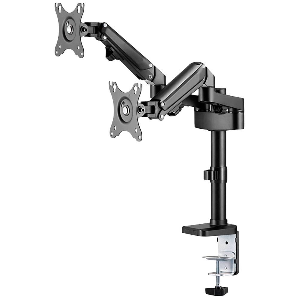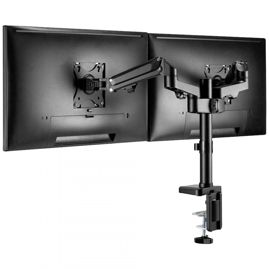 Brat de birou pentru monitor Neomounts, poate sustine 2 monitoare cu diagonala display 17-27″, suporta pana la 14kg per monitor, full motion, +45°, -45° inclinatie, +90°, -90° swivel, +180°, -180° rotatie, VESA min 75×75, VESA max 100×100, reglabil pe inaltime: 7,3-48,1 cm, negru. Garantie 5 ani