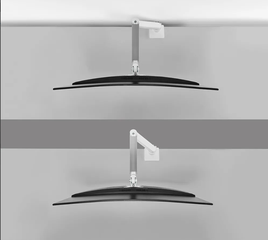 Brat monitor pentru ecrane curbate Neomounts DS70PLUS-450WH1; pentru display-uri cu diagonale 17″-49″, sistem de prindere VESA 75×75~100×100, greutate maxima suportata 18kg, full motion, tilt +45°, swivel 90°, rotate 180°, distanta fata de perete 108-568mm; gas spring; culoare alb. Garantie 5 ani