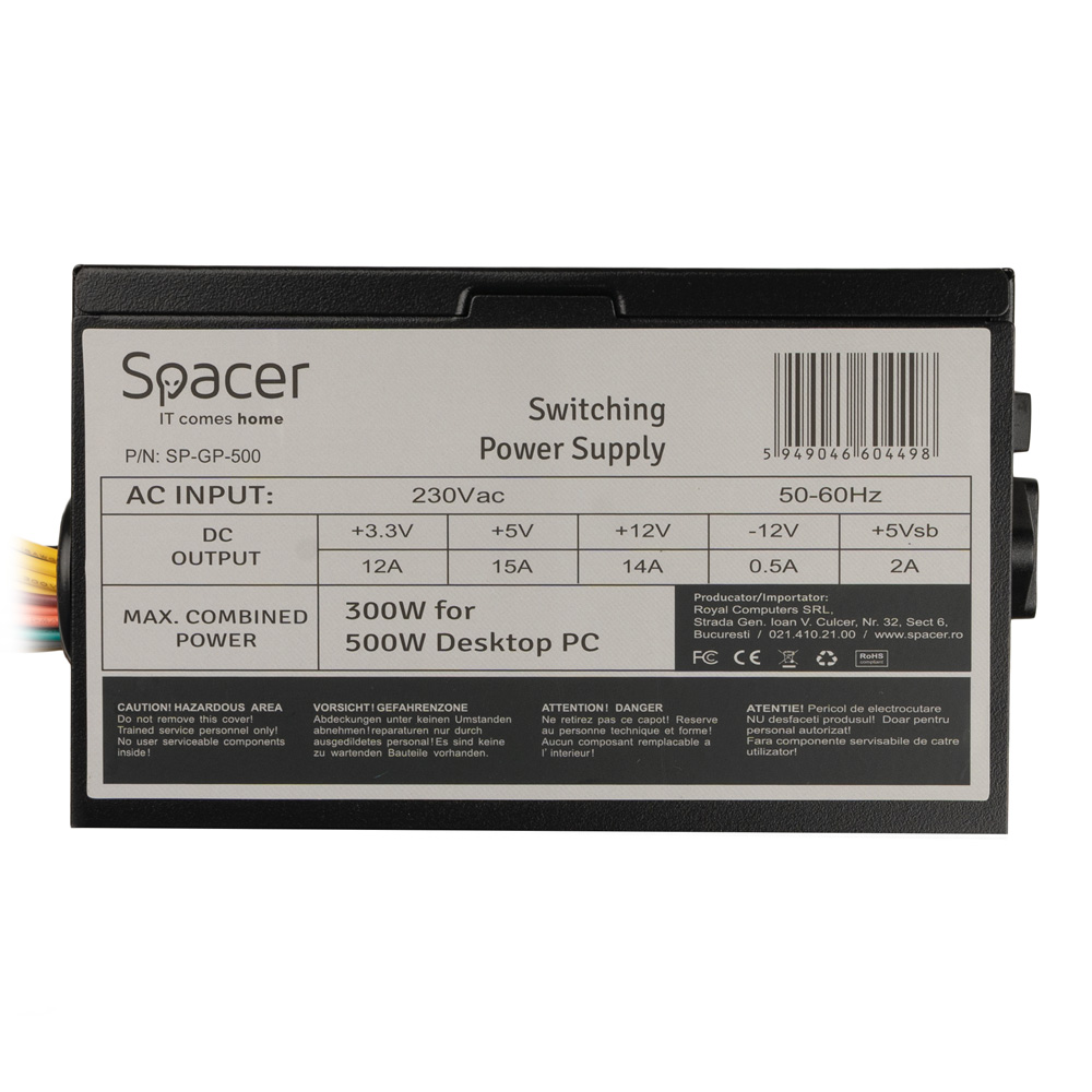 Sursa Spacer ATX 500, 300W for 500 Desktop PC, PFC pasiv, fan 120mm, 1x PCI-E (6), 4x S-ATA, 1x P8 (4+4), retail box, „SP-GP-500”