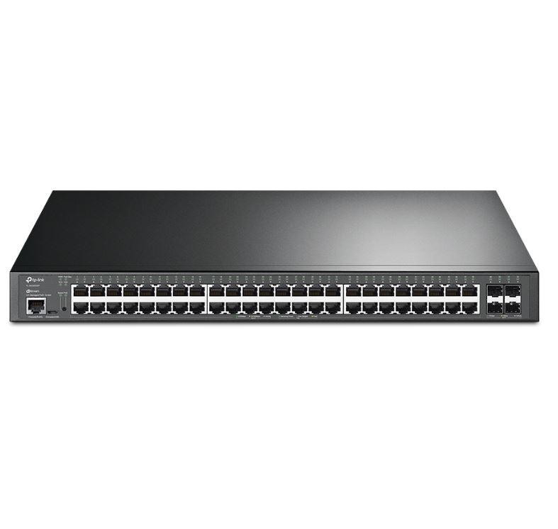 „JetStream™ 48-Port Gigabit and 4-Port 10GE SFP+ L2+ Managed Switch with 48-Port PoE+ PORT: 48× Gigabit PoE+ Ports, 4× 10G SFP+ Slots, RJ45/Micro-USB Console Port SPEC: 802.3at/af, 500 W PoE Power, 1U 19-inch Rack-mountable Steel Case FEATURE: Integration with JetStream™ SDN Controller,Static Routing, OAM, DDM, sFlow, 802.1Q VLAN, QinQ, STP/RSTP/MSTP, IGMP Snooping, 802.1p/DSCP QoS, ACL, 802.1x, Radius/Tacacs+ Authentication, LACP, CLI, SNMP, Dual Image/Configuration, IPv6”