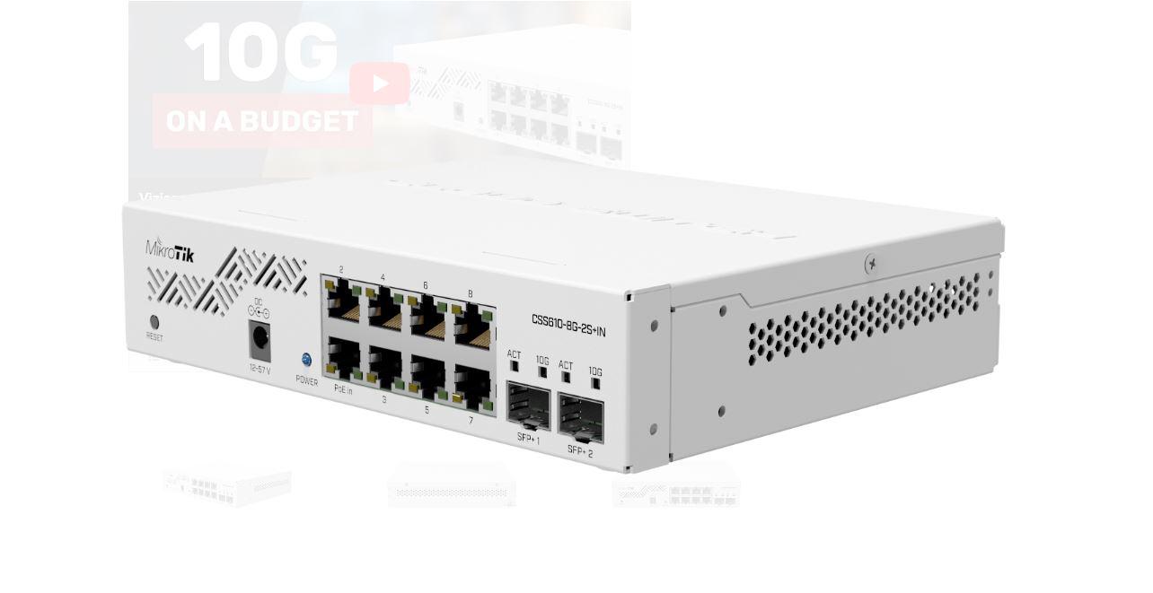 MIKROTIK, CSS610-8G-2S+IN 8G, 2 SFP+ Port , Indoor Switch 64kb Flash, Pasive POE, Dimensiuni: 200 x 167 x 46 mminterfata: 8 x 10/100/1000, 2 x SFP+, IP20, POE in- 12-57 V, consum maxim 5w.