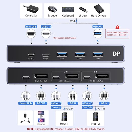 SWITCH KVM Ugreen, „CM695” Input: 2 x DP si USB-Type-C, 1 x Mini USB, Output: 1 x DP,3 x USB, 1 x USB-Type-C, rez. max.8K/60Hz „25962” (timbru verde 0.8 lei) – 6941876229628