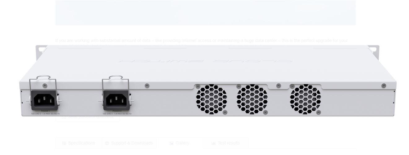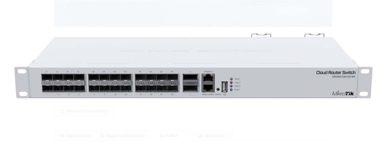 MIKROTIK, 24 Port QSFP+ 2 SFP L3 Managed Switch, CRS326-24S+2Q+RM, Procesor:650 MHz, 64 mb RAM, 16 mb Flash, Dimensiuni: 443 x 200 x 44 mm, interfata: 24 x 10Gpbs SFP+, 2 x 40Gpbs QSFP+, 1 x 10/100, 1 x USB, IP20, consum maxim 69w, 3 ventilatoare.