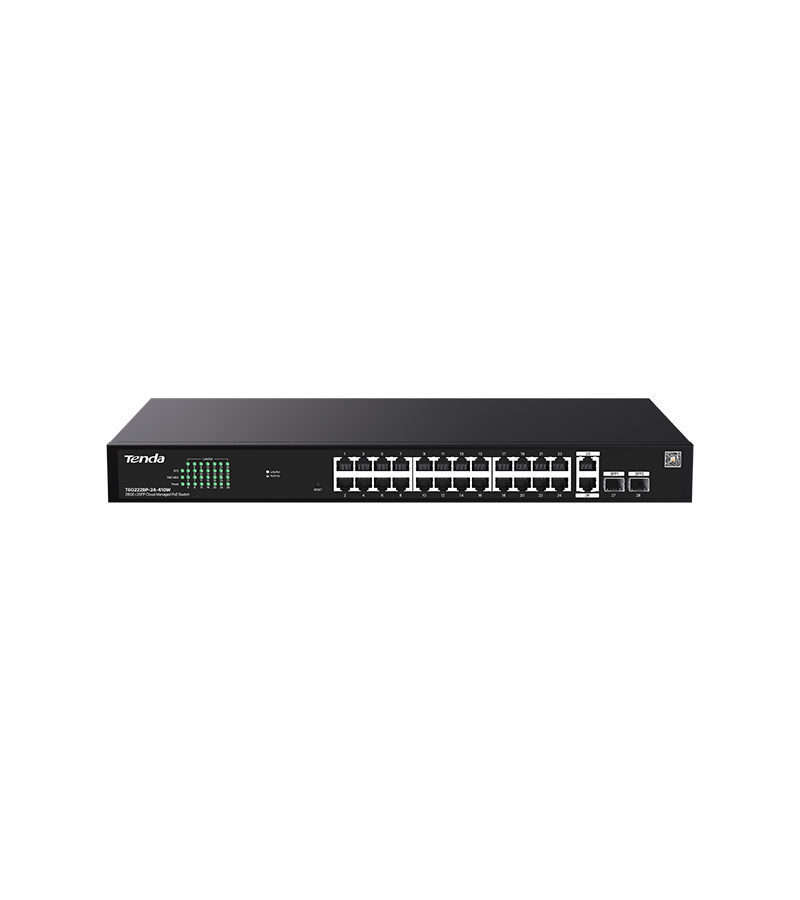 SWITCH TENDA PoE cloud managed, 26 GE+2 SFP porturi Gigabit, buget PoE 410W, metalic „TEG2228P-24-410W” (timbru verde 2 lei)