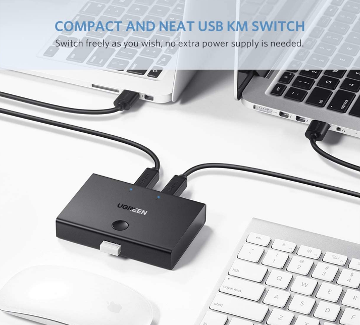 SWITCH USB SHARING Ugreen, „30345” porturi USB: USB-B x 2, conectare prin USB 2.0, cablu 1.5m inclus, buton comutare PC, LED, plastic, negru, „30345” (timbru verde 0.08 lei) – 6957303833450