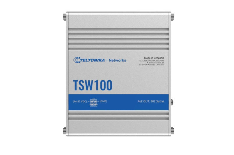 TELTONIKA INDUSTRIAL 5PORT Unmanaged POE+ Switch TSW100, Interfata: 5 x ETH ports, 10/100/1000 Mbps, supports auto MDI/MDIX crossover, Standarde retea: 802.3i, 802.3u, 802.3ab, 802.3x, 802.3az, 802.3ad, Porturi POE:1-4, POE Budget: 120W, Latime de banda: 10 Gbps, Carcasa aluminiu: Dimensiuni: 115 x 32 x 95 mm, Greutate: 350g, IP30.