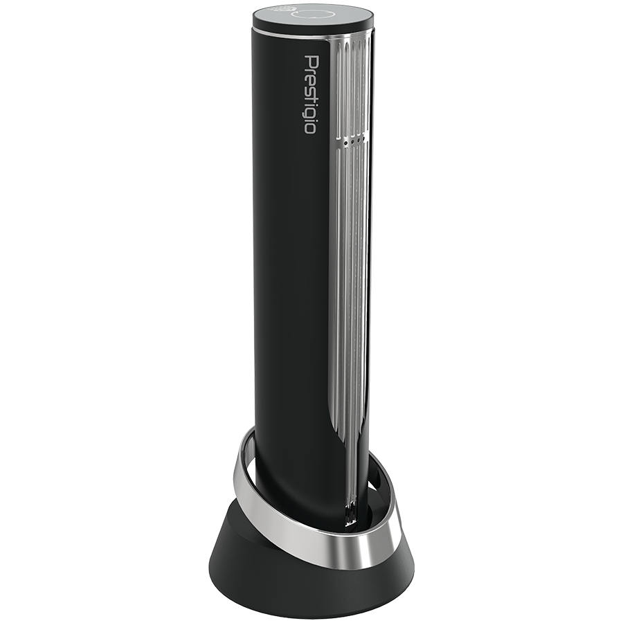 Prestigio Maggiore, smart wine opener, 100% automatic, opens up to 70 bottles without recharging, foil cutter included, premium design, 480mAh battery, Dimensions D 48*H228mm, black + silver color.