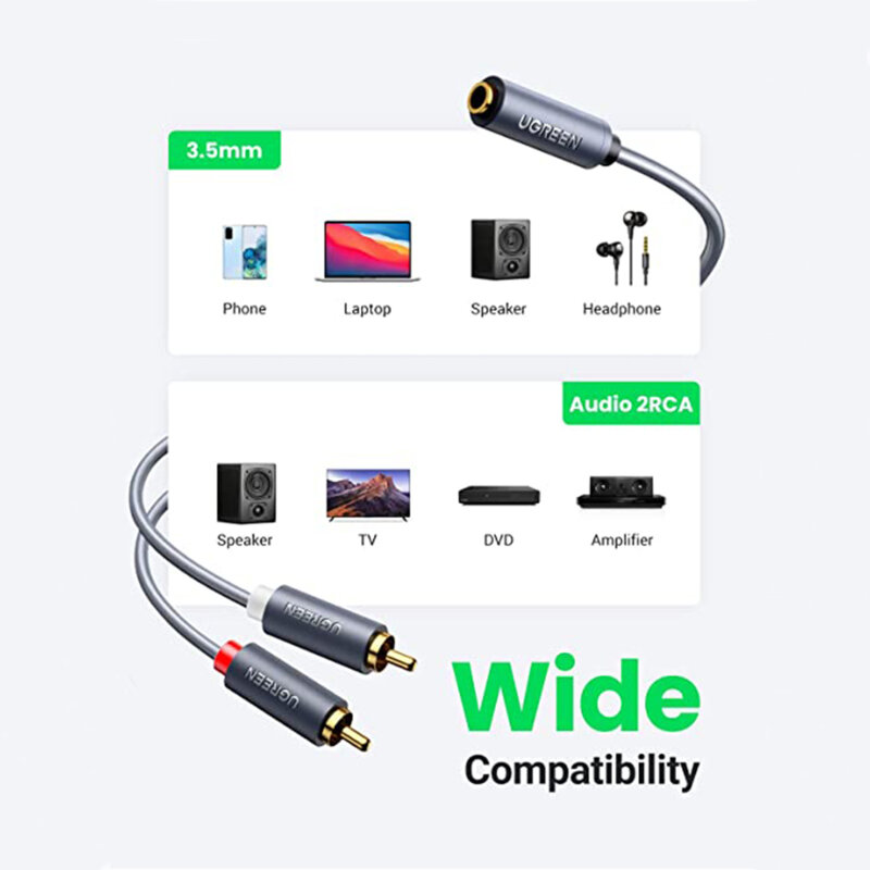 UGREEN AV102 2x mufa RCA (Cinch) 3,5 mm 1m (negru)
