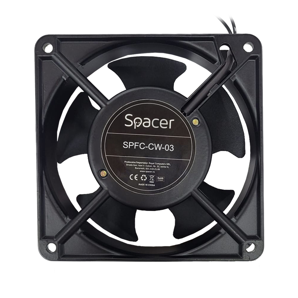 UNITATE RACIRE SPACER, 1U pentru rack 19″, 120mm, 1700rpm, 36dBA, flux aer 59cfm, otel 1.5mm, cablu 1.6m, black