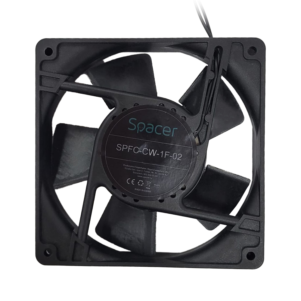 UNITATE RACIRE SPACER, 1U pentru rack 19″, 120mm, 2300rpm, 30dBA, flux aer 69cfm, otel 0.8mm, cablu 0.7m, black